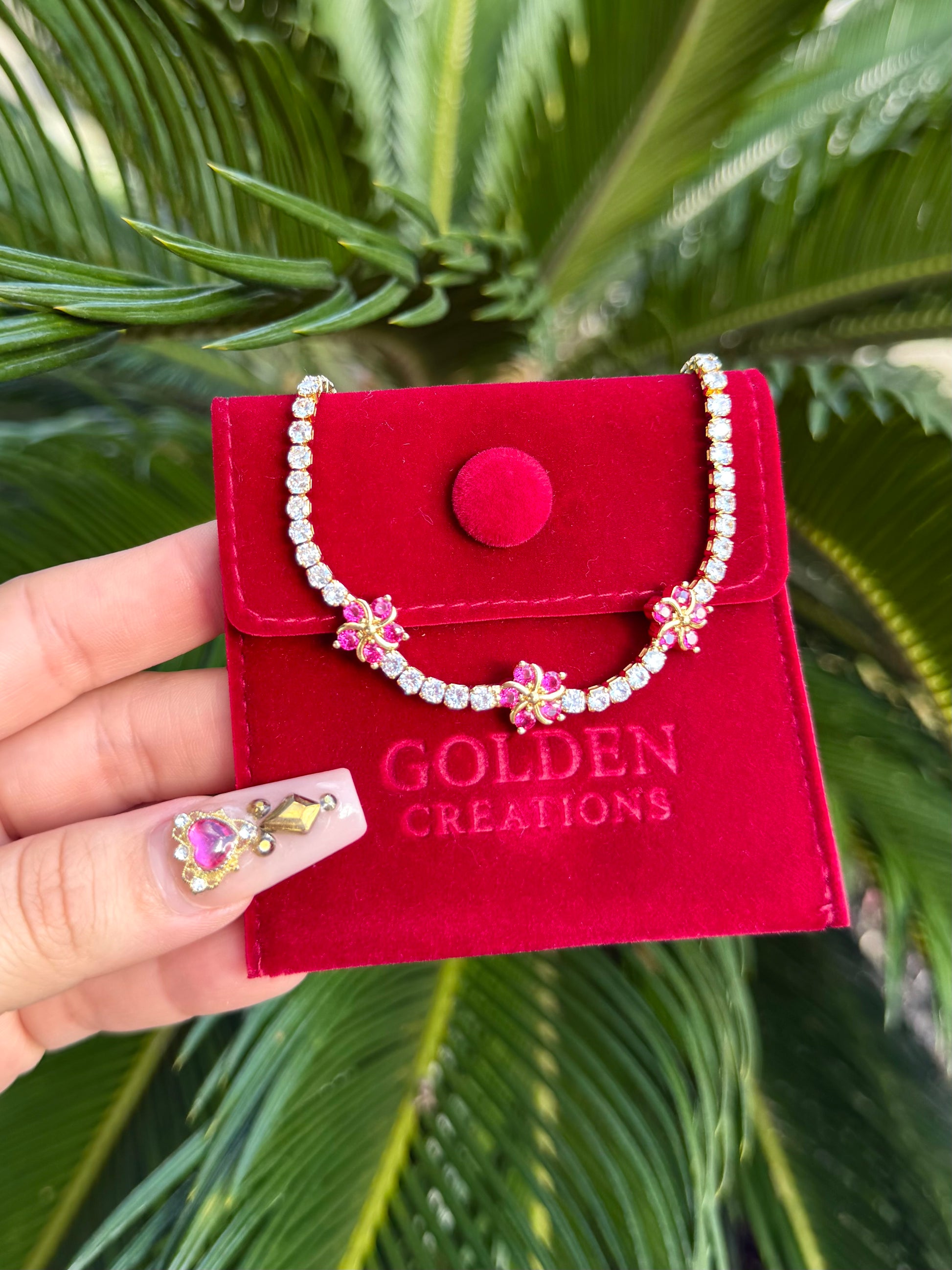 Un brazalete lleno de brillo, color y buena suerte. Diseñado con una fina línea de cristales que capturan la luz de forma espectacular, este tennis bracelet destaca por su encantador dije de flor blossom